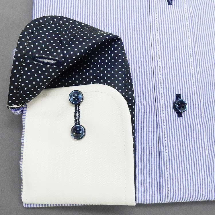 衿 | ボタンダウン クレリック ドゥエボットーニ セミロングポイントカラー 衿元パイピング |