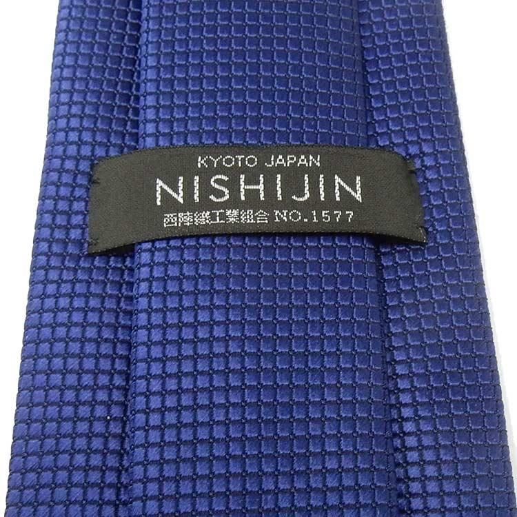 西陣織 ロングタイプ ネクタイ チーフ付 中紺 マイクロチェック シルク100% 日本製 メール便送料無料 NJ-H02-Long