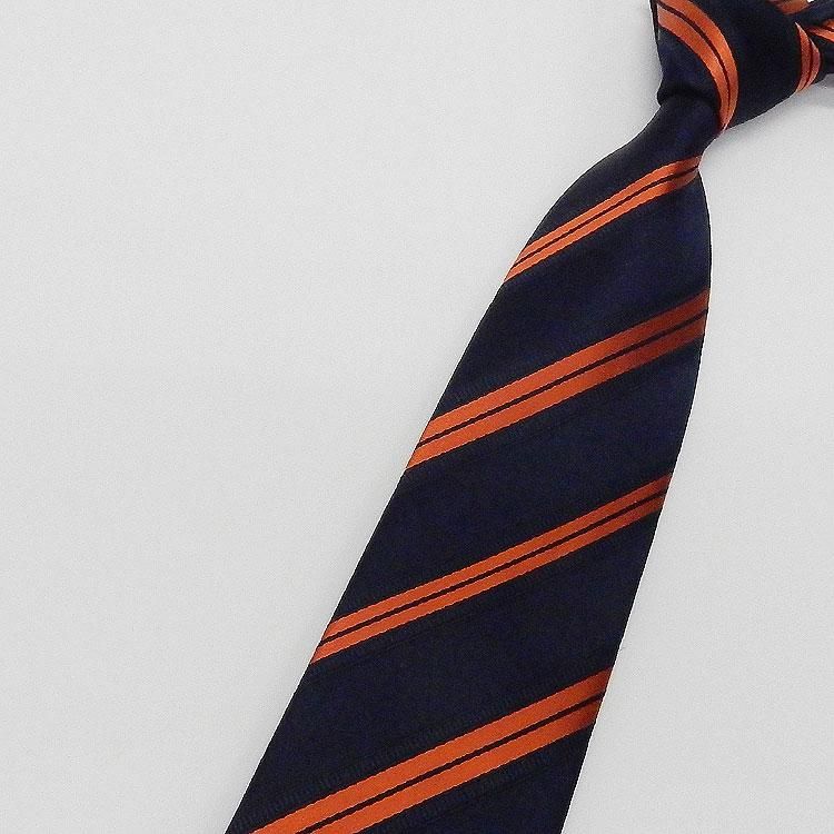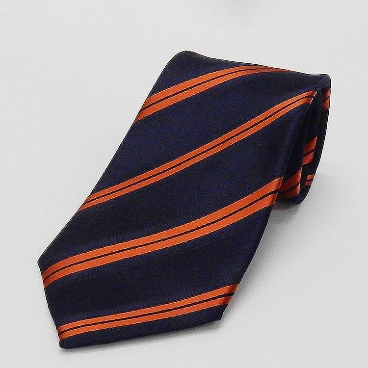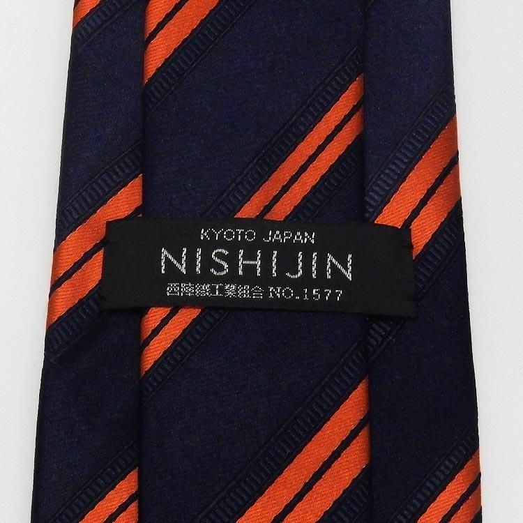 京都西陣織 ネクタイ シルク100% 赤橙×濃紺/ストライプ メール便OK NJ-SM05 NJ-SM05