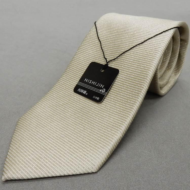 西陣織 フォーマルネクタイ シャンパンゴールド×銀ラメ 横畝 シルク100% 日本製 礼装 結婚式 njr10-SP