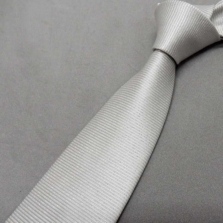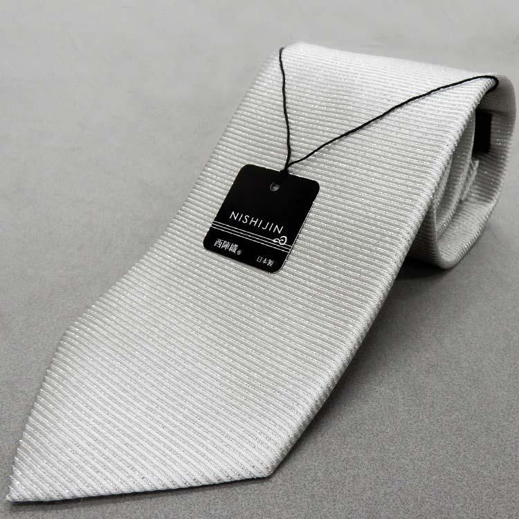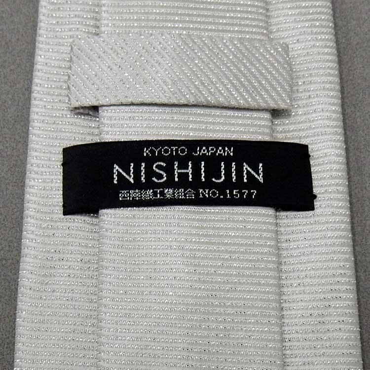 西陣織 フォーマルネクタイ シルバー×銀ラメ 横畝 シルク100% 日本製 礼装 結婚式・披露宴 njr10-SV