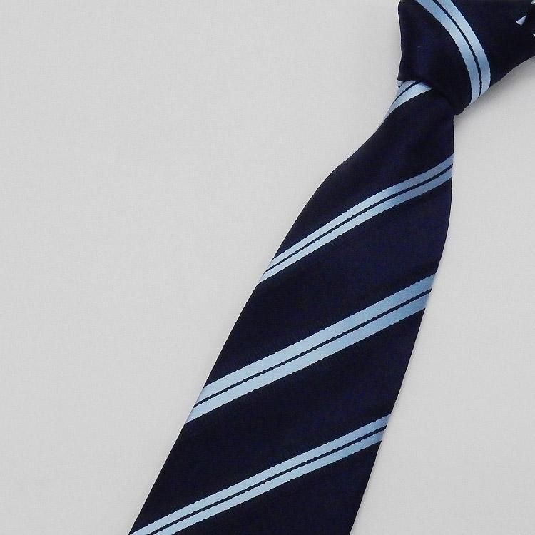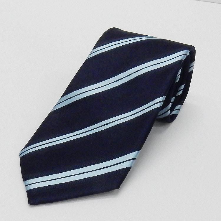 京都西陣織 ネクタイ シルク100% 水色×濃紺/ストライプ メール便OK NJ-SM02 NJ-SM02