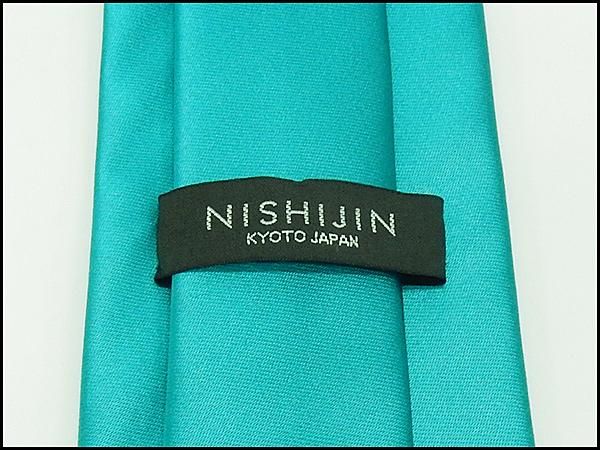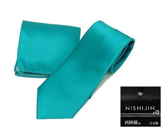 西陣織 ネクタイ チーフ付 ターコイズグリーン 無地 朱子織 シルク100% 日本製 ソリッドタイ njz10