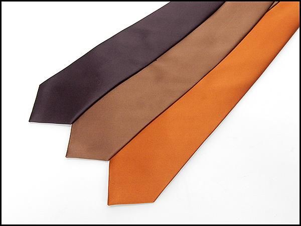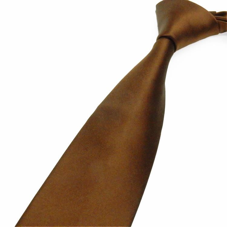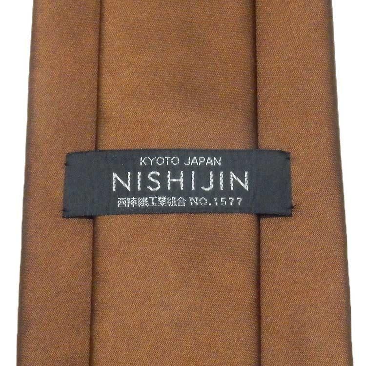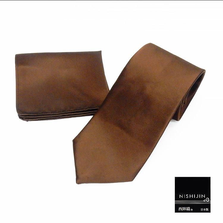 西陣織 ネクタイ チーフ付 ブロンズ茶 無地 朱子織 シルク100% 日本製 ソリッドタイ メール便可 njz20