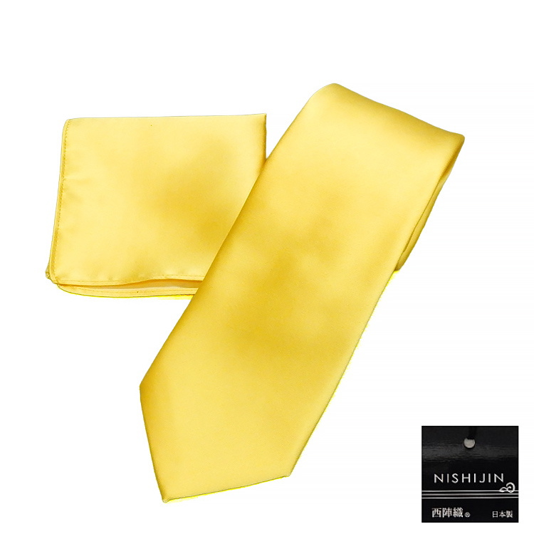 西陣織 ネクタイ チーフ付 イエローゴールド 無地 朱子織 シルク100% 日本製 ソリッドタイ njz22