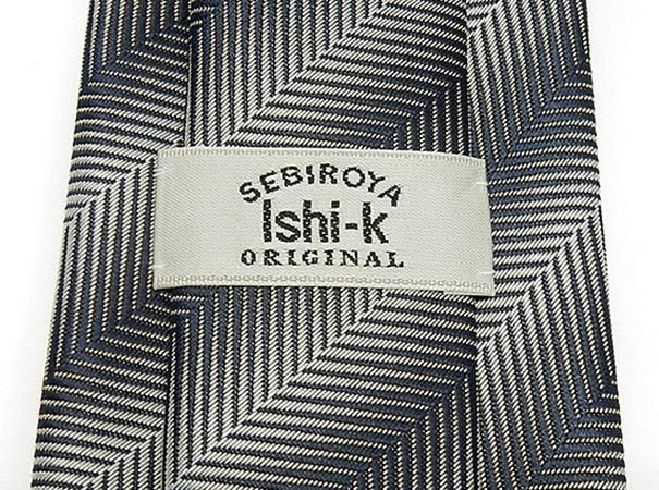 西陣織 オンリーワン ネクタイ シルバー×濃紺 ストライプ 切替 シルク100% 日本縫製 メール便送料無料