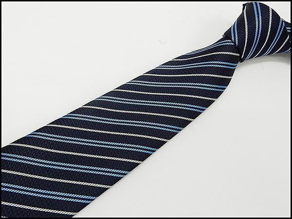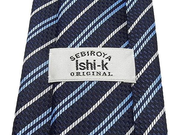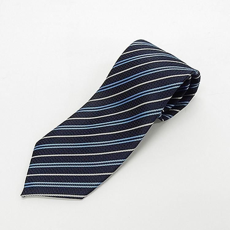 日本製ネクタイ 洗濯機OK 紺×空×銀 バスケット縞 甲州織 メール便OK NS03