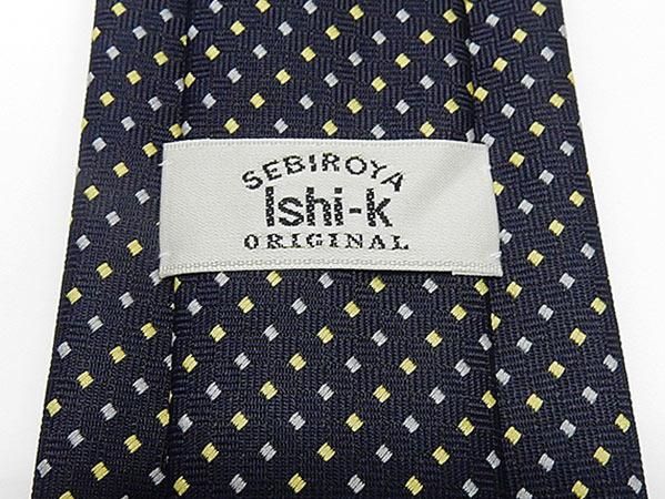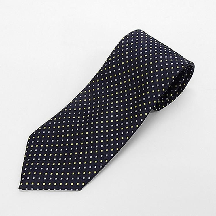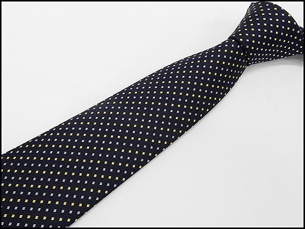 日本製ネクタイ 洗濯機OK 黒紺×黄×銀 籠織+ドット 甲州織 メール便OK NS05