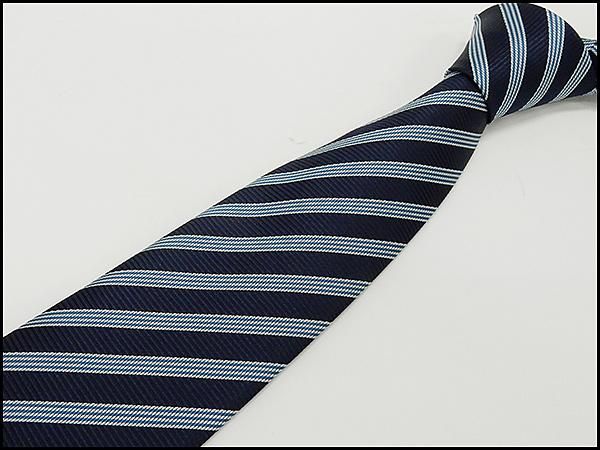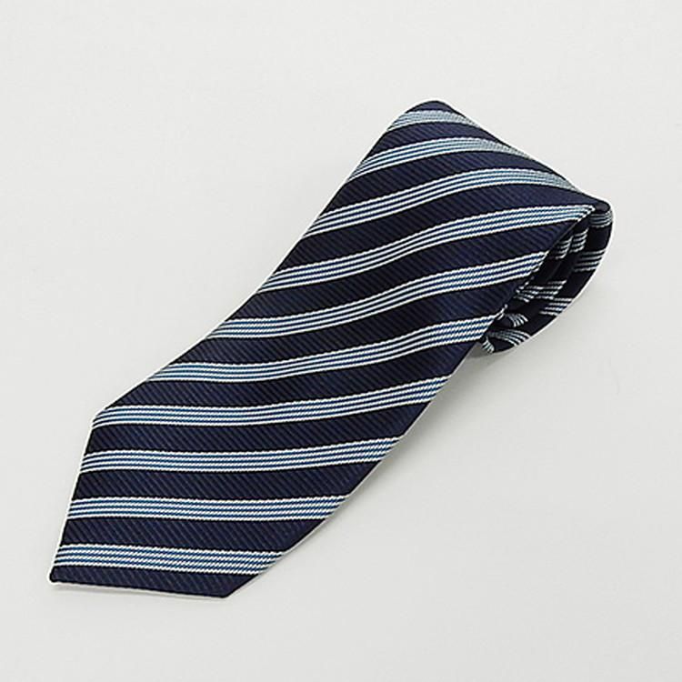 日本製ネクタイ 洗濯機OK 紺×ブルー×銀 ストライプ 甲州織 メール便OK NS08