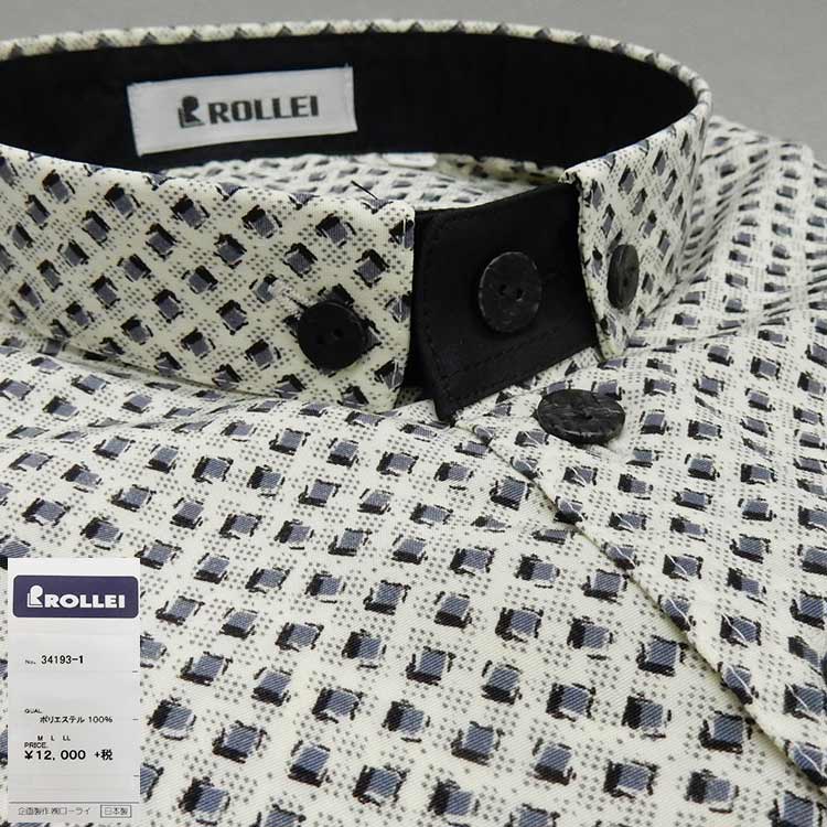 アダルトカジュアルシャツ [ROLLEI] 日本製 長袖 白系 チェック風 デザインシャツ ROL34193-1 ROL34193-1