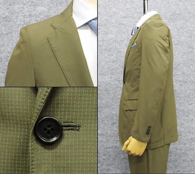 春夏物 メンズ スーツ セットアップ カジュアルスーツ グリーン系/小格子 ウォッシャブル SS2102-78 SS2102-78