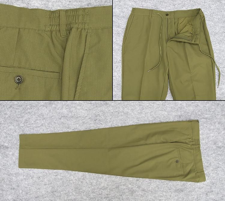 仕様 | コバステッチ パッドなし 一枚仕立て 左内側ポケット パンツ:ノータック ウエストサイドゴム ドローコード 裾上げ済み(たたき仕上げ) |