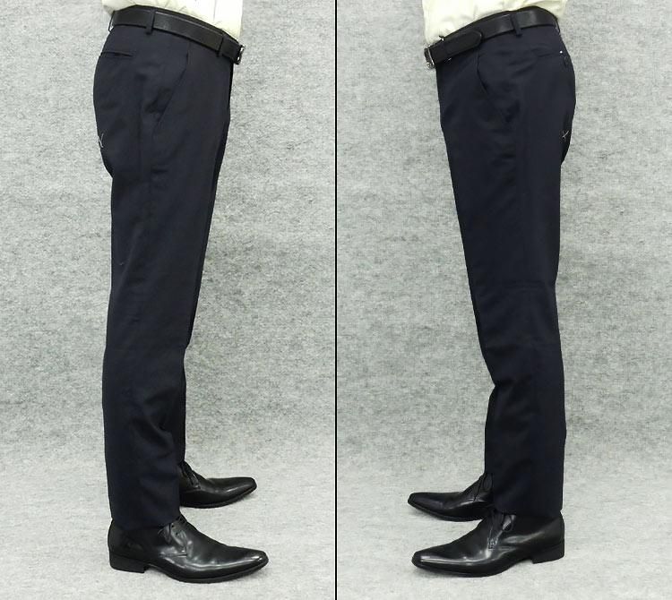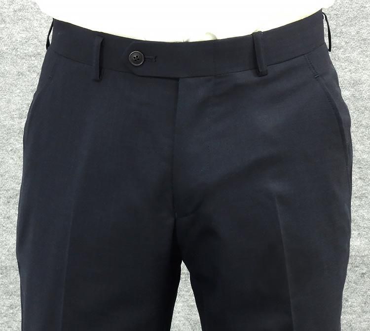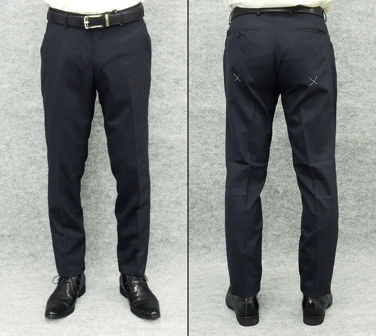 秋冬 ノータック「すっきり」スラックス 紺/小格子 ビジネスパンツ 73cm-97cm 送料無料 ウォッシャブル