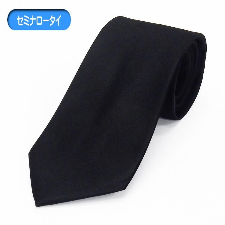 訳あり セミナロー スタイリッシュフォーマルネクタイ 黒 無地 シルク混 葬式・葬儀 メール便可 NF-BSN13