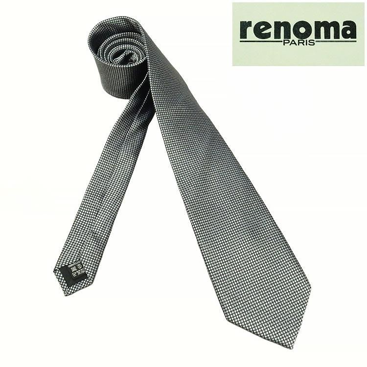 ◇renoma◇イタリア製ネクタイ◇シルバーグレー◇チェック◇シルク100%◇メール便可 レノマ REN102
