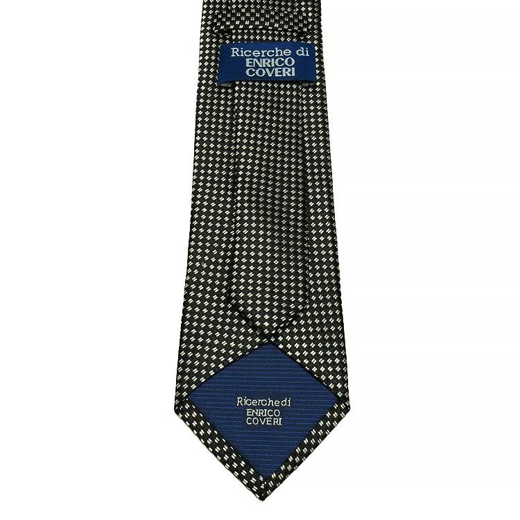 ◇ENRICO COVERI◇イタリア製ネクタイ◇黒×シルバー◇小紋格子◇絹100%◇エンリココベリ メール便可