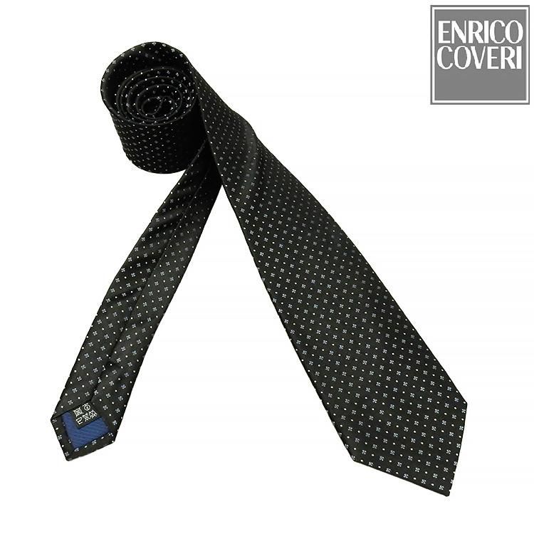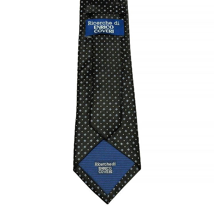 ◇ENRICO COVERI◇イタリア製ネクタイ◇黒◇小紋+ドット◇絹100%◇エンリココベリ メール便可 ENC103