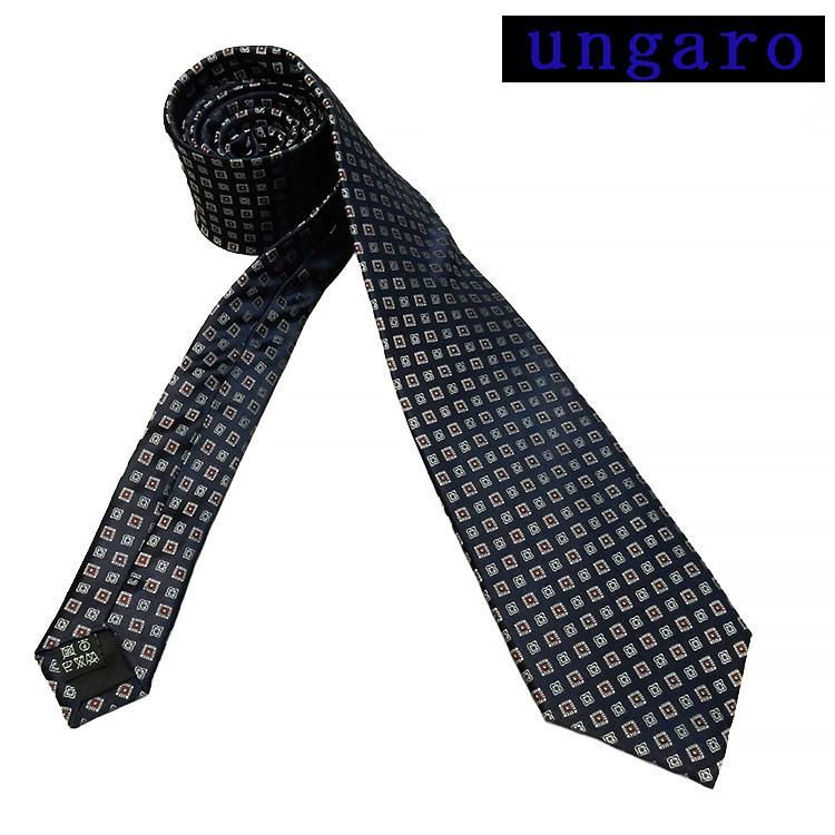 ◇ungaro◇イタリア製ネクタイ◇濃紺◇小紋◇シルク100%◇ウンガロ メール便可 ネクタイ ブランド