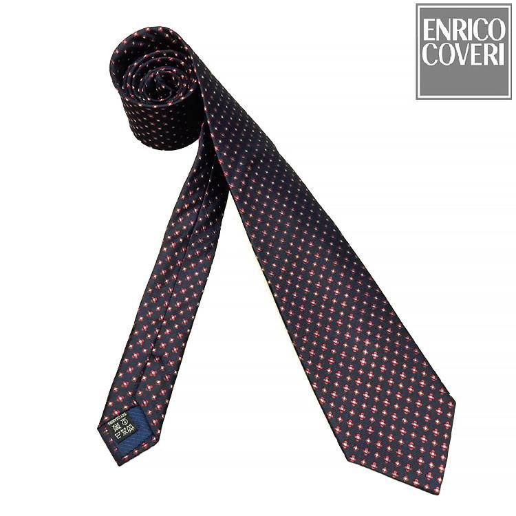 ◇ENRICO COVERI◇イタリア製ネクタイ◇濃紺×赤◇小紋◇絹100%◇エンリココベリ メール便可 ENC104