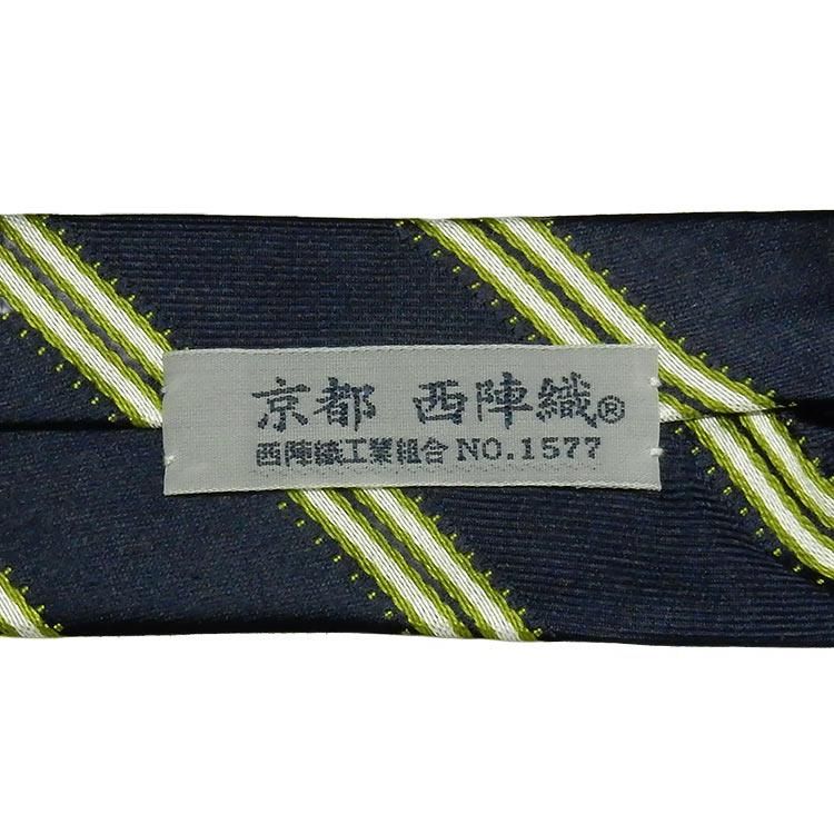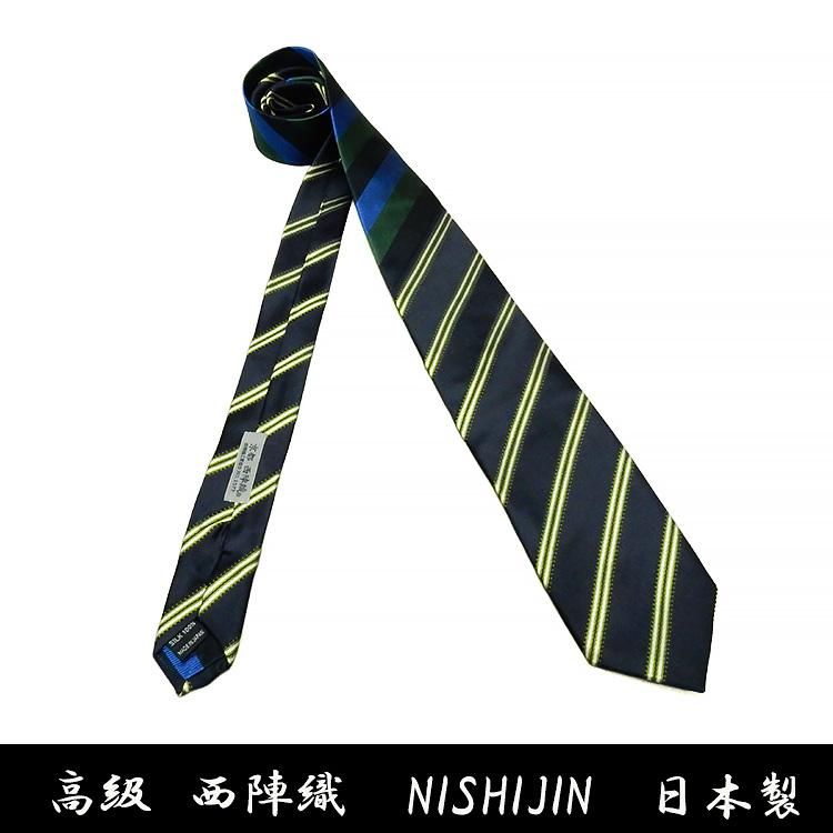 西陣織 オンリーワン ネクタイ 濃紺×青×緑 ストライプ 切替 シルク100% 日本縫製 メール便送料無料 NJ-ONLY03