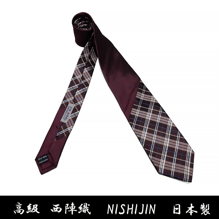 西陣織 オンリーワン ネクタイ 濃紫 無地×チェック 切替 シルク100% 日本縫製 メール便送料無料 NJ-ONLY10