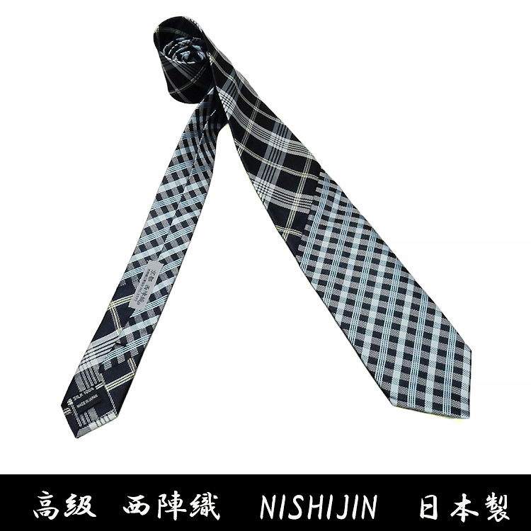 西陣織 オンリーワン ネクタイ 濃紺 チェック 切替 シルク100% 日本縫製 メール便送料無料 NJ-ONLY11 NJ-ONLY11