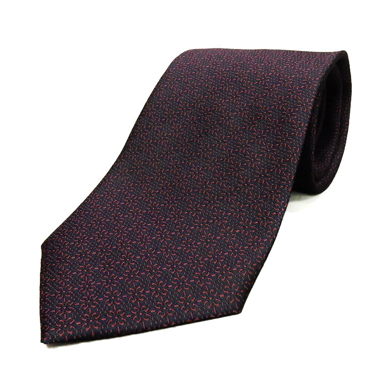 イタリー生地使用/京都産 ネクタイ シルクタイ ワイン/小紋×シェブロン柄 KYOTO VINTAGE メール便OK